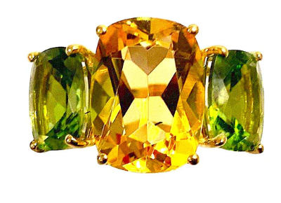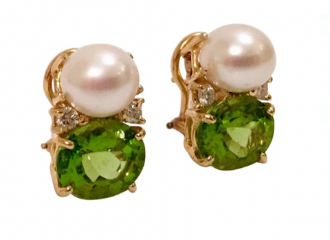 18kt yellow gold sand dollar earrings with peridot (approximately 20 cts) and diamonds weighing approximately 0.30 cts.